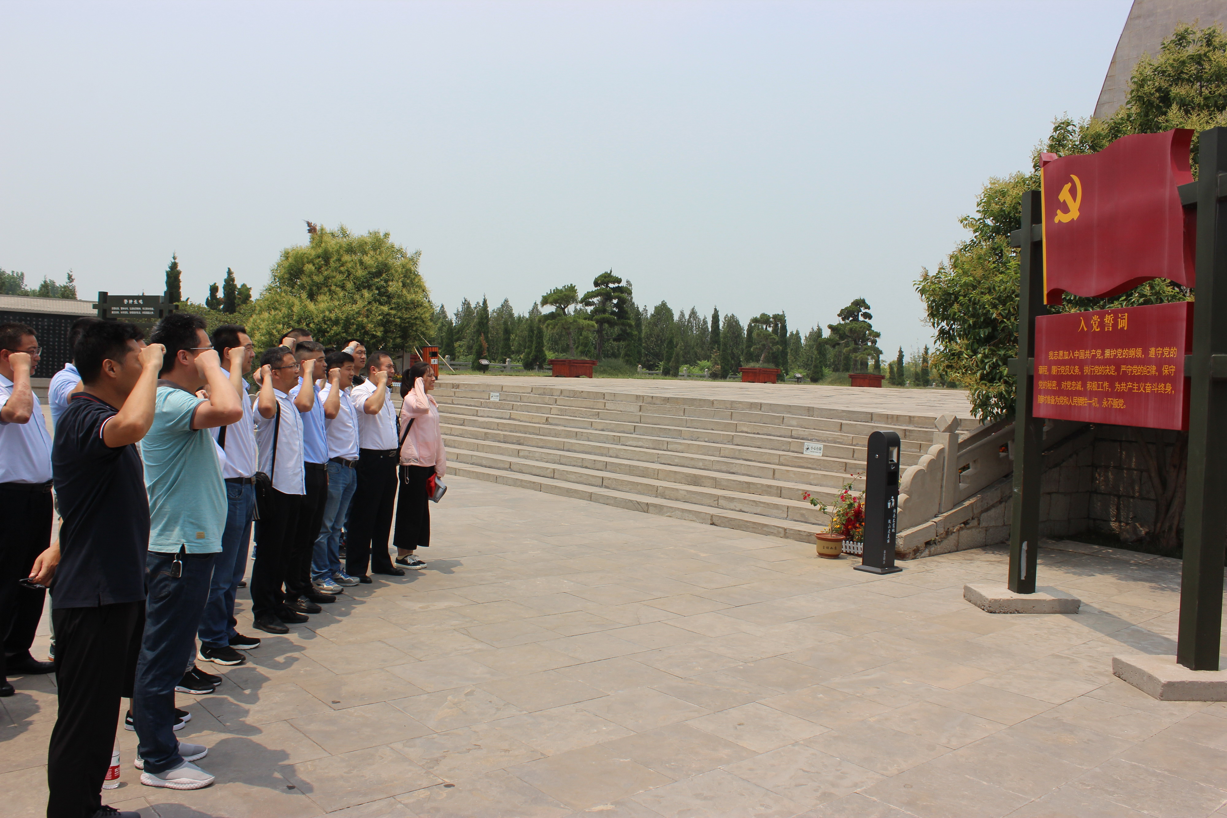 在鐵道游擊隊紀(jì)念碑前,黨員們面對鮮紅的黨旗,莊嚴(yán)的舉起右手,重溫入黨誓詞。“我志愿加入中國共產(chǎn)黨,擁護(hù)黨的綱領(lǐng),遵守黨的章程,履行黨員義務(wù)……隨時準(zhǔn)備為黨和人民犧牲一切,永不叛黨。”一聲聲鏗鏘有力的誓言響徹微山湖鐵道游擊隊紀(jì)念園,表達(dá)了黨員們對黨的無限忠誠,對鐵道游擊隊英雄們的崇高敬意。