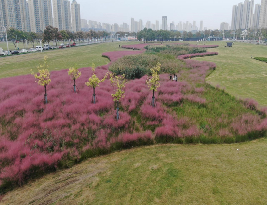 一抹粉黛醉秋色,四方草坪疊翠生——秋季精細化養(yǎng)護進行時