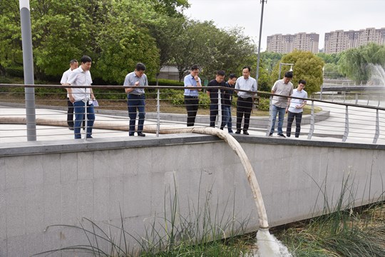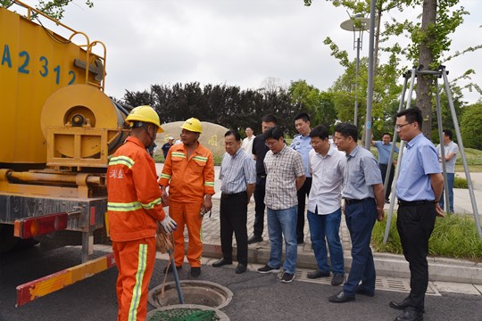 此次演練模擬園區(qū)連續(xù)普降暴雨,同里湖路部分道路出現(xiàn)嚴(yán)重積水,影響通行。接到險(xiǎn)情匯報(bào),園區(qū)立即啟動(dòng)防汛應(yīng)急預(yù)案,公司應(yīng)急搶險(xiǎn)組迅速趕到現(xiàn)場,放置警示標(biāo)志提醒車輛行人繞道通行。隨后根據(jù)現(xiàn)場查勘迅速制定排水方案,首先使用防汛應(yīng)急泵車抽排路面積水,隨后對(duì)積水路段管道進(jìn)行緊急疏通,最后采用CCTV檢測技術(shù)查明堵塞原因并制定后續(xù)維護(hù)方案。整個(gè)演練過程人員分工明確,搶險(xiǎn)反應(yīng)迅速,環(huán)節(jié)銜接流暢。