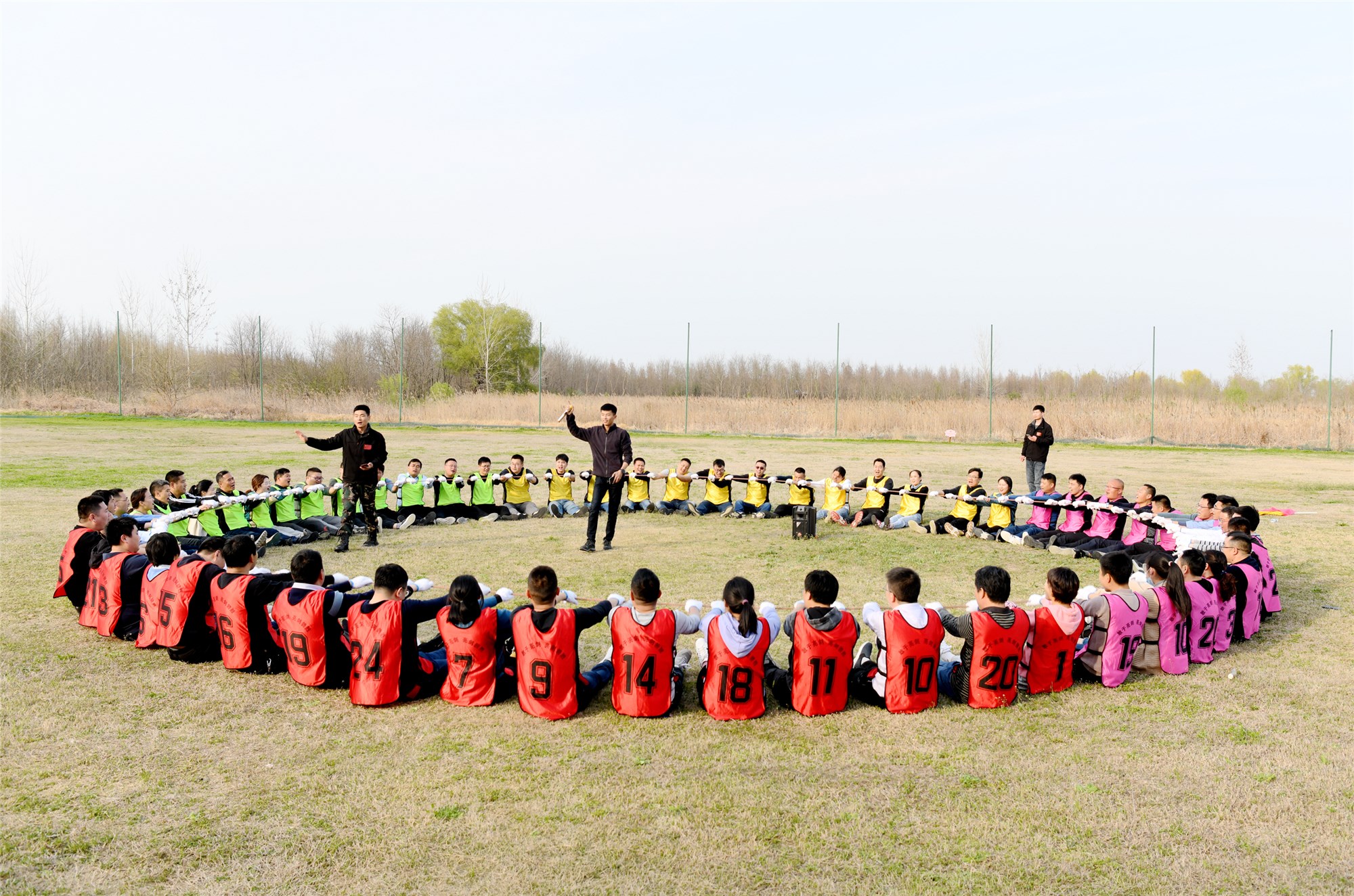 下午,隊(duì)伍一行來(lái)到洪澤湖濕地公園,開展拓展訓(xùn)練。隨著緊湊的訓(xùn)練項(xiàng)目“破冰分組”、“超音速”、“激情節(jié)拍”結(jié)束,每個(gè)人的潛能都被激發(fā)出來(lái)。在最后的“動(dòng)力圈”項(xiàng)目上,更是完成了200多斤壯漢走絲繩的挑戰(zhàn),充分展現(xiàn)出了團(tuán)隊(duì)間的信任,更是讓大家深深體會(huì)到“單絲不成線,獨(dú)木不成林”的道理。