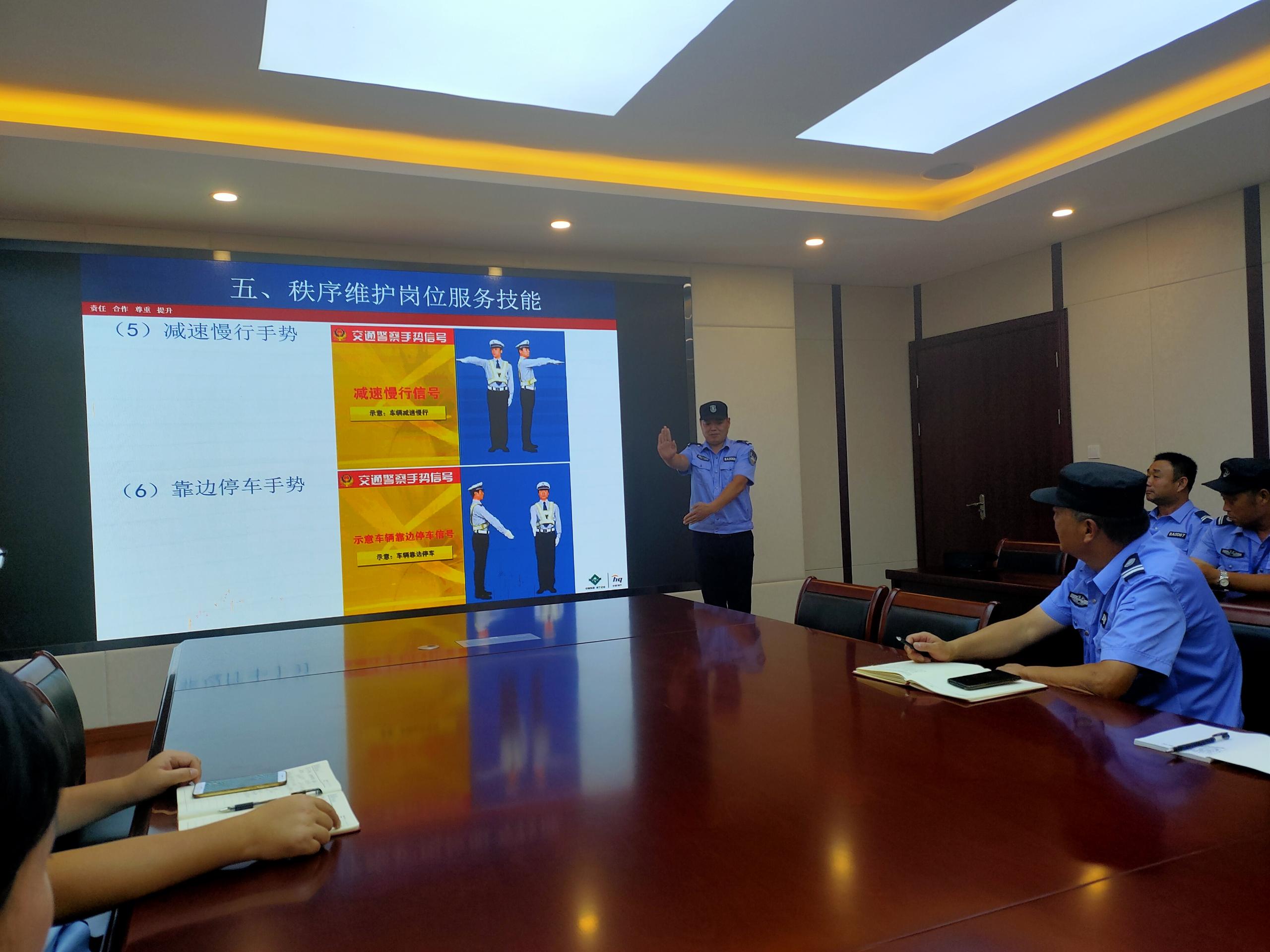 此次培訓主要講解了道路交通法律法規(guī)、交通標識標線、交通事故認定知識以及如何正確文明行車。根據保安人員崗位職能特點,結合校園周邊交通現(xiàn)狀及交通陋習等方面,教授安保人員如何做好一名校園交通安全宣傳員、引導學校學生安全上下學、應急處理校園周邊交通事故等。 隨后介紹了常用的交通指揮手勢,講解指揮手勢的動作要領及含義。