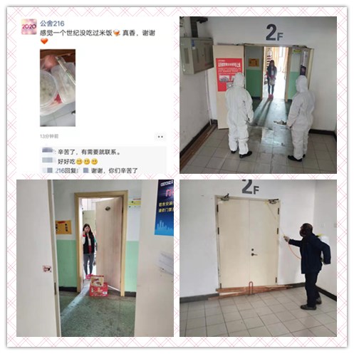 建發(fā)公司按照?qǐng)@區(qū)防疫工作領(lǐng)導(dǎo)小組要求,為確保入住員工的生命健康安全,及時(shí)啟動(dòng)應(yīng)急預(yù)案,對(duì)進(jìn)入人員體溫檢測(cè),小劉的幫扶小組,每天通過(guò)微信、電話(huà)詢(xún)問(wèn)小劉的身體情況,及時(shí)了解生活需求,免費(fèi)提供一日三餐,幫其代購(gòu)生活用品,并在精神上進(jìn)行鼓勵(lì)支持,幫助排解身心壓力,為這次新冠病毒肺炎疫情控制,構(gòu)筑了一道聯(lián)防聯(lián)治的嚴(yán)密防線(xiàn)。