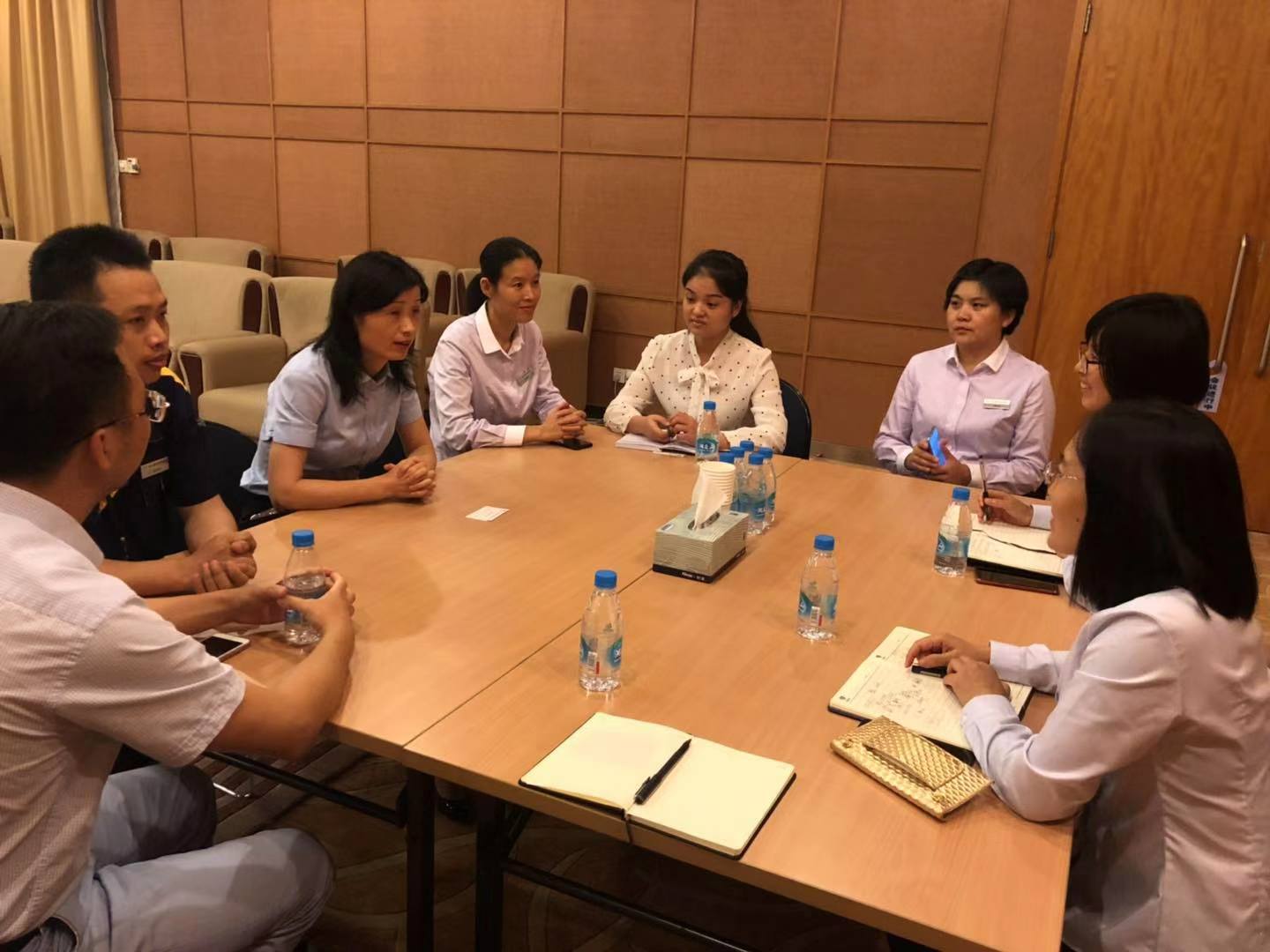 一行人兵分兩路,客服環(huán)境組跟隨蘇州工業(yè)園區(qū)環(huán)境部負(fù)責(zé)人學(xué)習(xí)會(huì)務(wù)服務(wù)的會(huì)前準(zhǔn)備工作、會(huì)后清潔工作,重點(diǎn)學(xué)習(xí)會(huì)務(wù)實(shí)操服務(wù),工程人員跟隨工程部學(xué)習(xí)會(huì)議廳設(shè)備配置和保養(yǎng)。