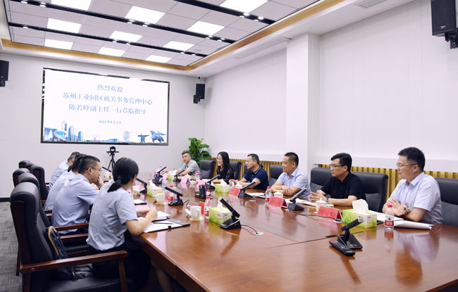 8月4日下午,蘇州工業(yè)園區(qū)機關(guān)事務(wù)管理中心陳若峰副主任一行到建發(fā)公司調(diào)研。園區(qū)黨工委委員、管委會副主任張漢華出席座談會,城發(fā)公司、建發(fā)公司管理層陪同調(diào)研、座談。