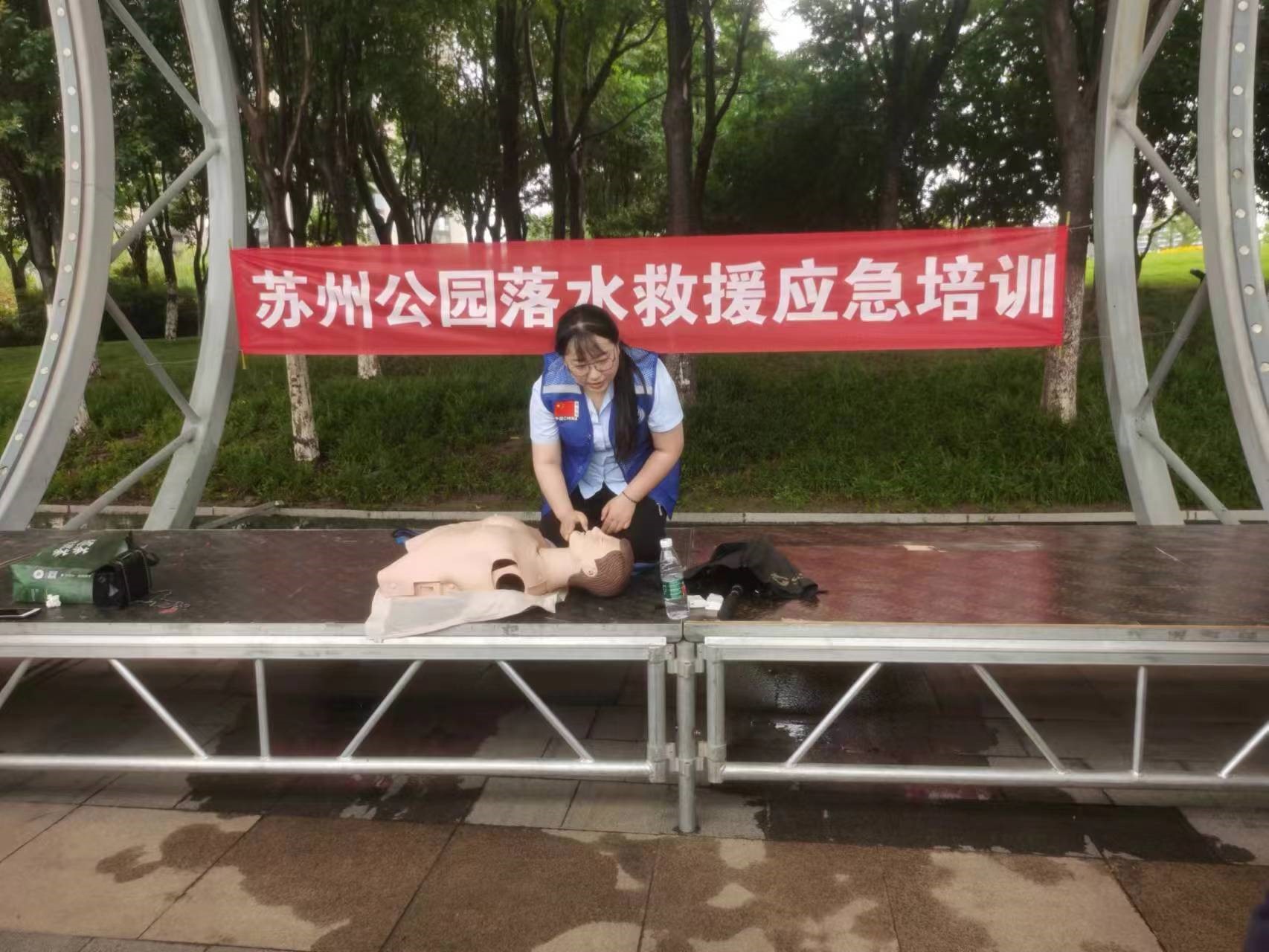 培訓(xùn)現(xiàn)場,藍(lán)天救援隊(duì)救援人員從溺水概論、溺水現(xiàn)場救護(hù)、溺水預(yù)防三個(gè)方面詳細(xì)講解了防溺水知識(shí)及技能,同時(shí)使用人體模具演示了溺水后心肺復(fù)蘇急救方法,隨后,參訓(xùn)人員進(jìn)行了實(shí)操練習(xí)。