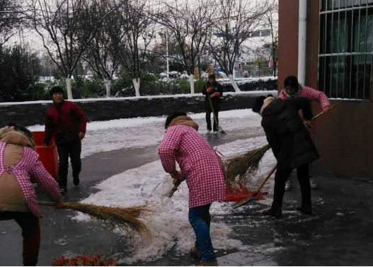 次日氣溫驟降,零下4度,多數(shù)路面存在結(jié)冰現(xiàn)象,加上路面落葉較多。天未亮,保潔、安保人員就到達(dá)園區(qū)公舍主干道、單元門(mén)、地庫(kù)出入口等指定區(qū)域,伴隨著凜冽的寒風(fēng),開(kāi)始除雪化冰。對(duì)于他們來(lái)講,這注定又是忙碌的一天,經(jīng)過(guò)2個(gè)小時(shí)緊張而有序的忙碌,基本完成了各個(gè)園區(qū)公舍各個(gè)路面、單元門(mén)、非機(jī)動(dòng)車(chē)道、地庫(kù)出入口積雪的清掃工作。