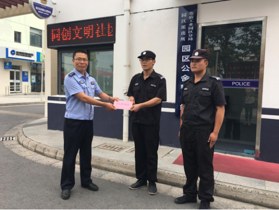 為表彰協(xié)助公安機關抓獲市局督辦系列盜竊案件嫌疑人的見義勇為行為,9月21日,蘇宿工業(yè)園區(qū)公安分局一行人來到園區(qū)公舍,根據(jù)《宿遷市見義勇為基金會獎勵撫恤辦法》和《宿遷市聯(lián)防保安人員見義勇為獎勵辦法》相關規(guī)定,研究決定對7月23日晚成功擒獲“園區(qū)公舍系列盜竊案”嫌疑人的兩名園區(qū)公舍保安張可、鞠銀龍進行獎勵。