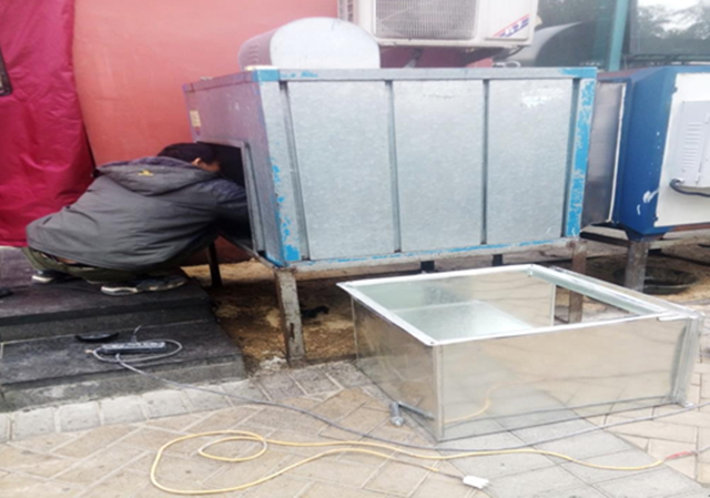 1月11日下午2時,正處于午飯結(jié)束,發(fā)現(xiàn)師傅們正在對2家商戶油煙管道進行整改。