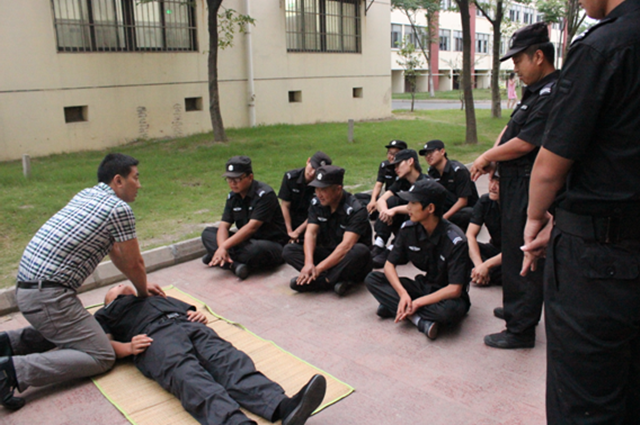培訓過程中,消防安全主管對各個操作要領進行逐一講解并實際操作演示,各參訓人員依次進行心臟復蘇模擬實踐。通過培訓,強化了保安員的現(xiàn)場急救意識,基本掌握了操作要領,起到了良好的急救知識科普教育效果。