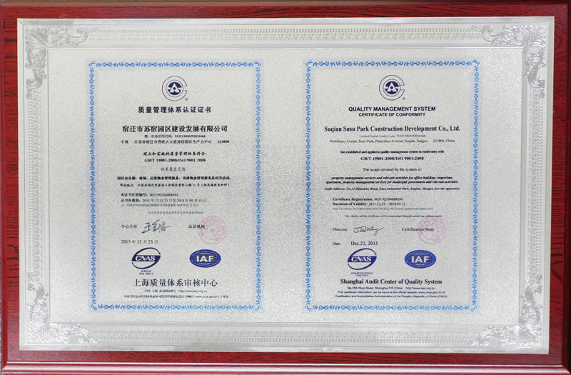 質量管理體系認證證書